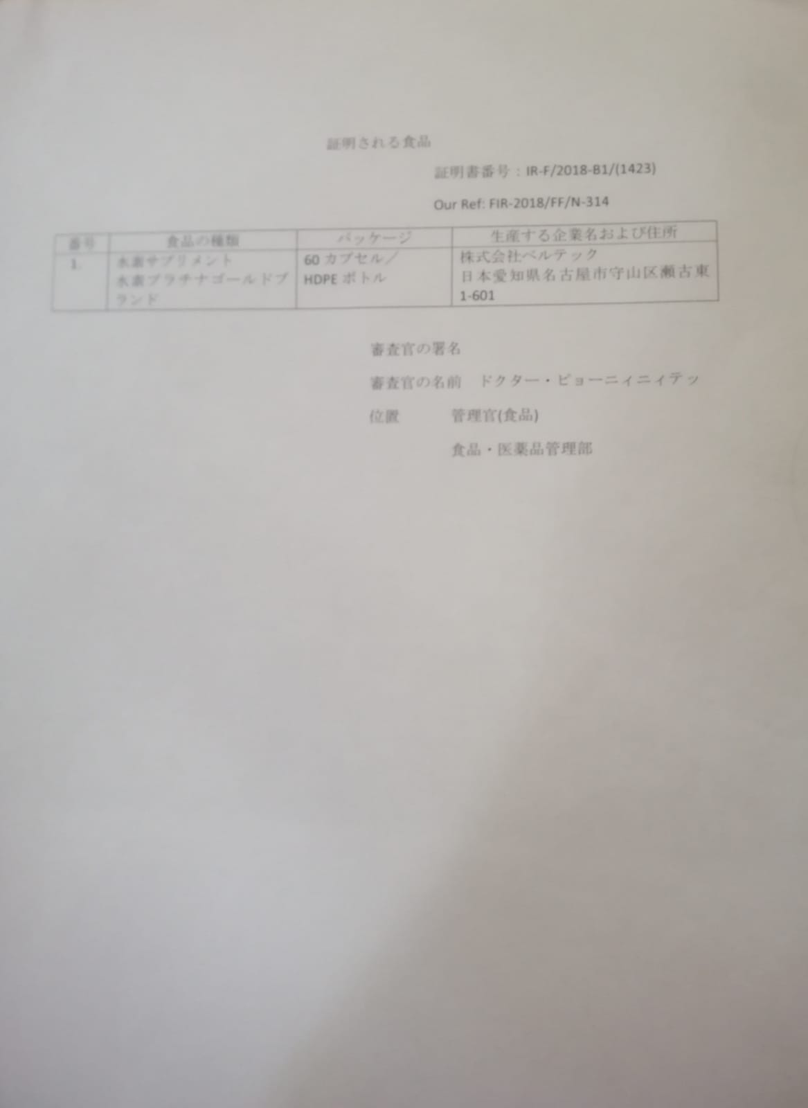 Hydrogen is an "antioxidant" that suppresses the action of active oxygen and prevents oxidation of the body. It is said that if the amount of active oxygen increases too much, it will lead to disease and aging. For this reason, the intake of hydrogen is attracting attention even among medical professionals. Belltec Japan developed it in collaboration with a raw material manufacturer in Tokyo and sold it in bottles of 60 capsules, which recommended 2 Capsules per day, 12 hours apart. The supplement made mainly from perilla oil, which is rich in dietary fiber and protein and rich in hydrogen.